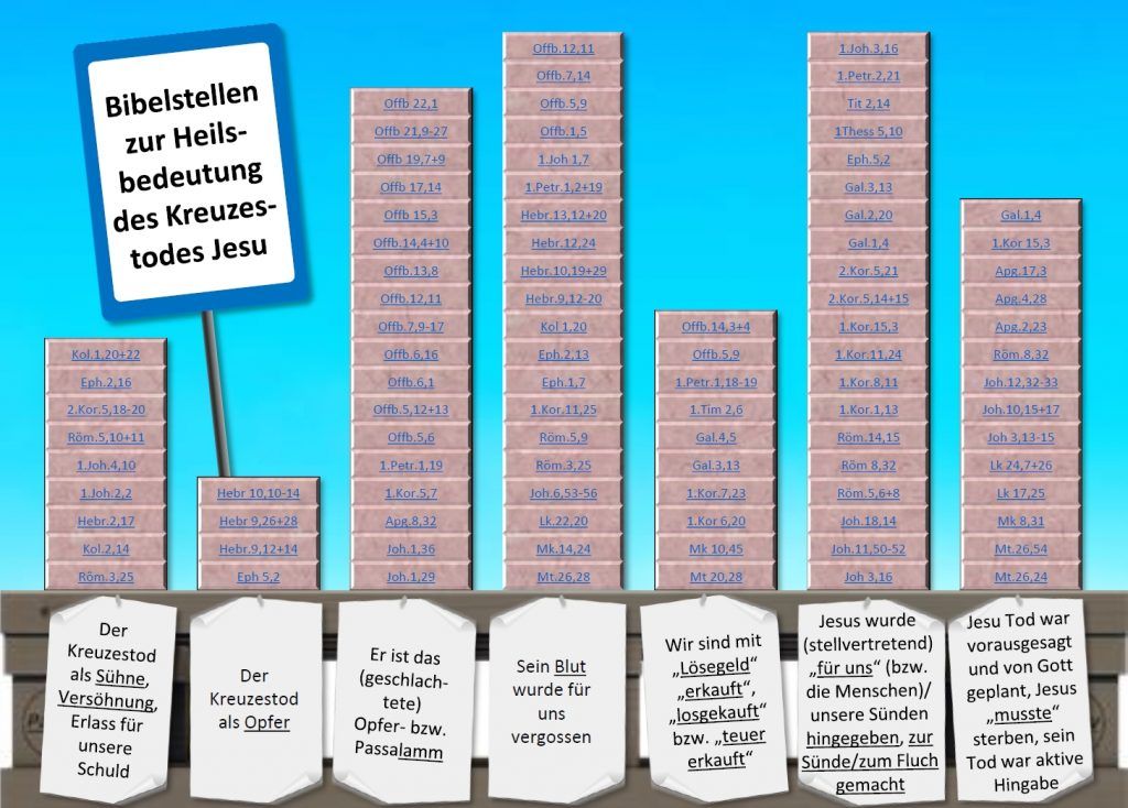 17: Der Kreuzestod dient zur Versöhnung: Röm.5,10+11; 2.Kor.5,18-20; Eph.2,16; Kol.1,20+22;